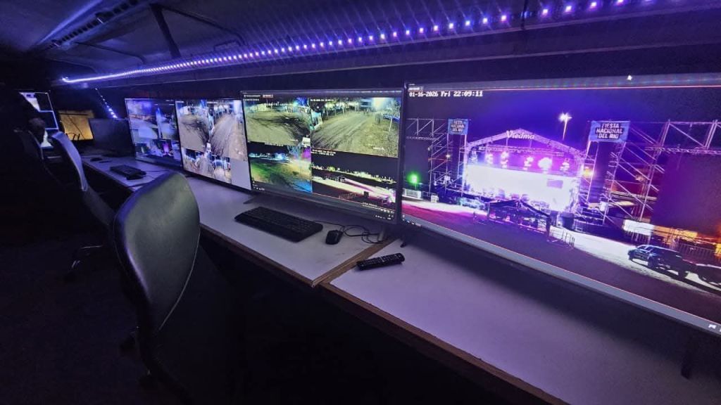 📡🎥 El operativo incluye un Centro de Monitoreo Móvil ubicado en uno de los accesos principales al predio, con cámaras domo y fijas que se suman a las ya existentes en el entorno, permitiendo un seguimiento permanente del evento y de las zonas aledañas.